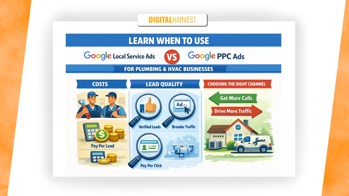 If you want a clear plan tailored to your market, reach out to us at Digital Harvest and fill out the contact form to book a call with us. We’ll help you sort through your options and focus on what actually brings in more HVAC and plumbing customers without wasting ad spend.