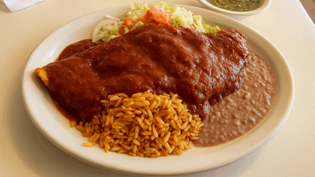 Each plate is served piping hot, topped with a final drizzle of red or green chile (or both, “Christmas style”) for an extra punch of flavor. It’s a truly sensory experience, with every bite offering a contrast of soft tortillas, creamy cheese, and spicy, aromatic chile.